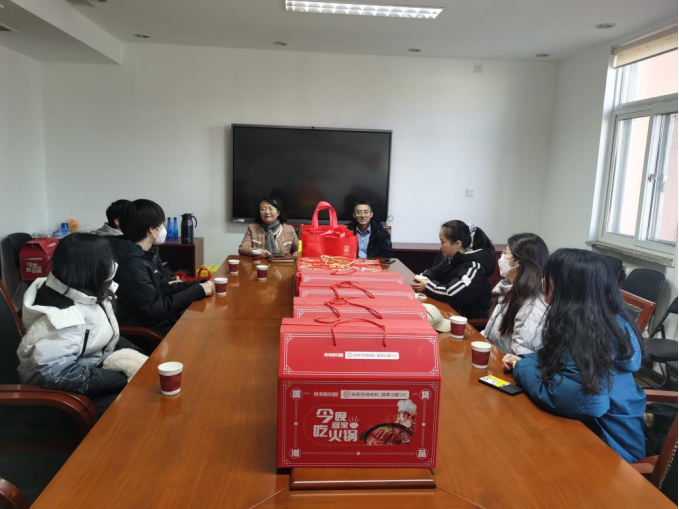 2023年1月19日,农历腊月二十八,在图配楼517会议室,公司召开春节留校同学座谈会,了解留校同学们的生活、学习情况。公司党委书记孙敏、经理李国武、辅导员李玲玲和留校过年的6位同学参加了本次座谈会。