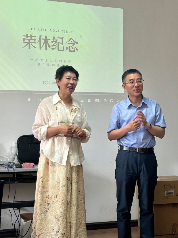 最后,会议举行了冯源源老师的荣休仪式,公司领导冯源源老师的付出表示衷心的感谢。大家共同回顾了冯老师多年来在教学和科研方面的突出贡献并表示高度的赞扬与肯定,大家也纷纷送上了美好的祝福与祝愿,现场气氛温馨感人。