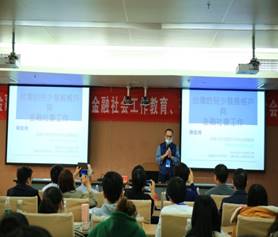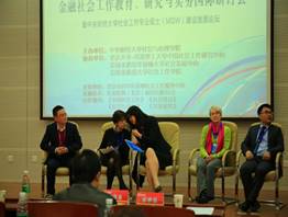 在“本土金融社会工作的发展”主题发言中,中国社会工作联合会常务副秘书长金莉,青岛科技大学法公司王琪,广东财经大学艾战胜,首都经济贸易大学冯浩,廊坊师范公司田阳等学者分别就金融社会工作的教育与发展提出独特的看法。比如金融社会工作与基层社区两会的结合,金融社会工作与互联网、慈善的结合、金融社会工作的特色课程设置与人才培养等提出了独到的见解。