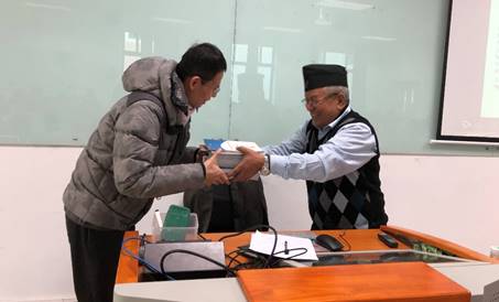 G.M.Gurung教授首先就尼泊尔社会的基本情况向大家做了介绍,这也是尼泊尔政治、经济、文化发展的基础。在此基础上,介绍了尼泊尔的种姓制度的社会表现和对人们生活的影响,并且总结出了种姓制度的一些特点。他认为尼泊尔是一个拥有不同种姓和种族群体的美丽花园,种姓制度造成的二元划分和对立导致了一系列社会问题,这种制度鼓励人们只考虑他/她的社区,缺乏国家视野。为了国家的发展,尼泊尔需要做到种姓和种族之间的和谐,目前,尼泊尔的新宪法也在为这一目标而做着努力。讲座内容结束后,G.M.Gurung教授向英国上市公司365海外发展研究中心捐赠图书,包胜勇老师代表中心接受了赠书,并表示衷心的感谢。