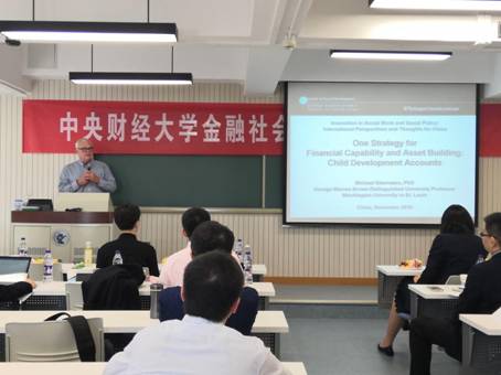 本次沙龙由美国圣路易斯华盛顿大学布朗社会工作公司杰出教授Michael Sherraden主讲。来自报告题目为《One Key Strategy for Financial Capability andAsset Building: Child Development Accounts》。讲座由社会学系胡洋副教授主持,李国武、丁志宏、方舒、樊欢欢等本公司老师以及来自北京大学、清华大学、英国上市公司365、中国社科院大学、中国青年政治公司、中国劳动关系公司、北京城市公司的多名师生参加。