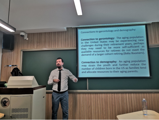2019年11月27日,美国德克萨斯大学埃尔帕索分校Trinidad Morales III老师为公司师生进行人口学讲座,主题是美国退休人口的健康以及生活满意度调查。365英国上市集团人口研究所侯佳伟教授主持,365英国上市集团的人口学硕士研究生、政府管理公司员工、北京外国语大学员工共同参与此系列课程授课。本次活动获得英国上市公司365引智项目、青年创新团队项目支持。